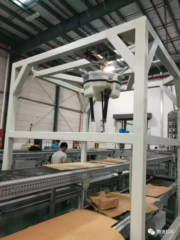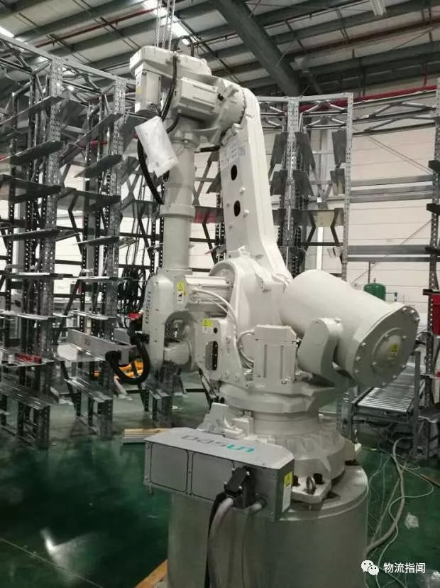 2018年兩會,國家郵政局馬局長在部長通道上特別強調,快遞實名制和快遞信息安全的發展趨勢,電子面單加密對推動實名制有著重要的價值。 (五)菜鳥各種黑科技: 黑科技現在在全面滲透各種物流場景,在菜鳥的海寧自動化倉庫中,無人技術應用得淋漓盡致。包括自動貼標、自動化包裝機、機器人存儲及揀選系統、以及行業最先進的機械臂等。 1.緩存機器人: 使用6軸緩存機器人+夾具實現從貨架區自動揀出物流箱,將物流箱放置在輸送線上至摘果流程。