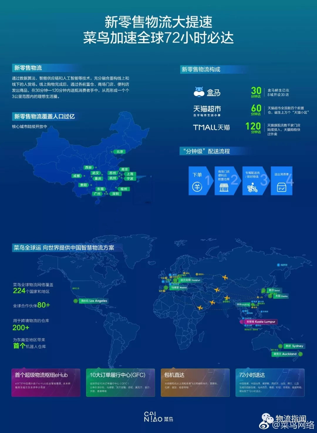 【綜述】 全面梳理完菜鳥的技術和模式體系,讓人感覺異常通透,也讓人感覺非常有意思。自己一直在反問幾個問題: 1.2008年的我們,當時所想象到的2018年的物流技術是怎么樣的呢? 2.未來,下一個10年過后,2028年的中國物流技術會是怎么樣的呢? 3.如果沒有菜鳥這樣的新興平臺出現,中國物流的企業是怎樣的現狀呢? 2018年的中國互聯網商業已經全面轉向新零售,新零售背后拼的不是移動端的流量,而是線下與線上的融合。新零售背后的供應鏈正在面臨一次全面的重構,這次重構與2007年的電商爆發期完全不一樣,新零售時期的供應鏈重構表現出如下幾個特征: