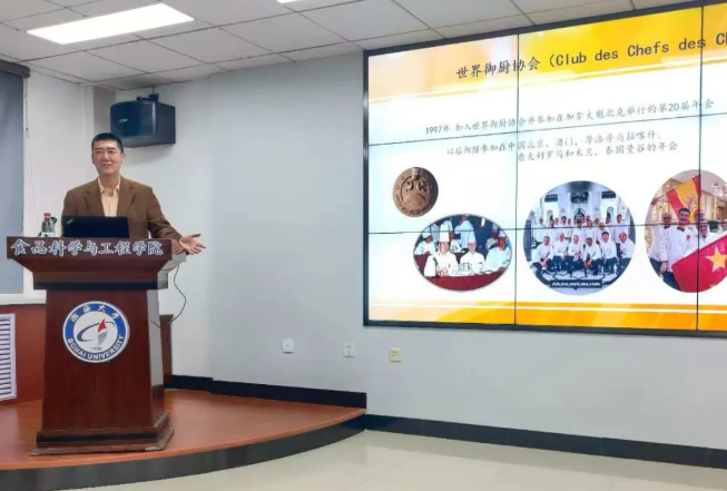 儀式結束后,徐龍大師圍繞主題“探索餐桌上的文化世界”為在場師生帶來了一場長達三小時的專題分享。分享內容緊扣食品前沿動態,涵蓋理論創新與實踐案例,深入淺出,引人深思。在互動環節中,師生踴躍提問,徐龍大師逐一細致解答,現場氣氛熱烈,學術交流氛圍濃厚。